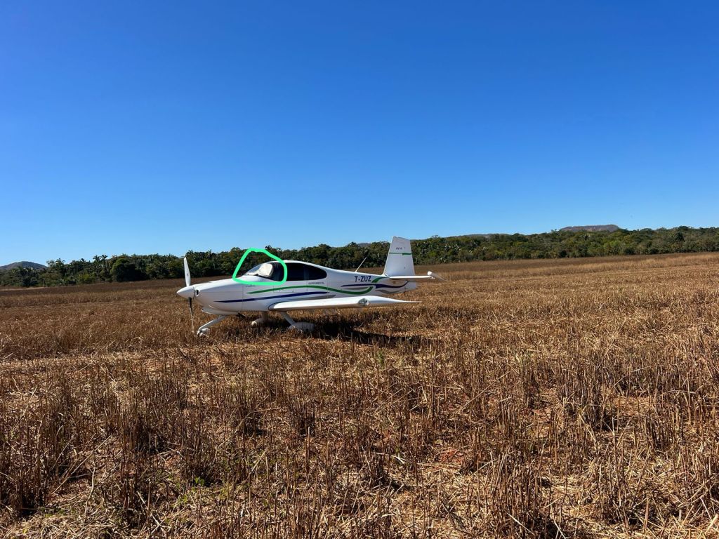 A descoberta ocorreu após o responsável por uma fazenda da região notar a presença inusitada da aeronave em sua propriedade e acionar as autoridades. Uma viatura do destacamento local da PM foi imediatamente enviada ao local, onde confirmou a presença da aeronave em meio à lavoura.