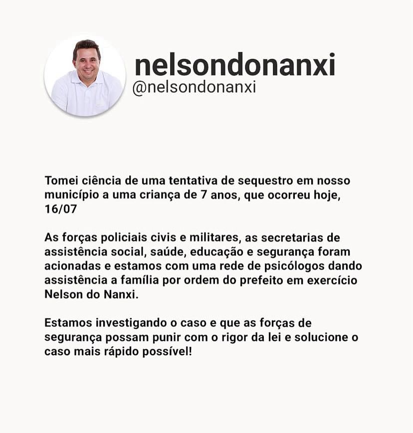 Infelizmente, trago uma notícia que chocou nossa cidade na tarde desta terça-feira, 16 de julho. Uma criança de apenas 7 anos foi vítima de uma tentativa de sequestro em Tuntum. O caso, por si só já revoltante, se torna ainda mais grave com a confirmação feita pelo delegado César Ferro de que a criança também foi abusada.